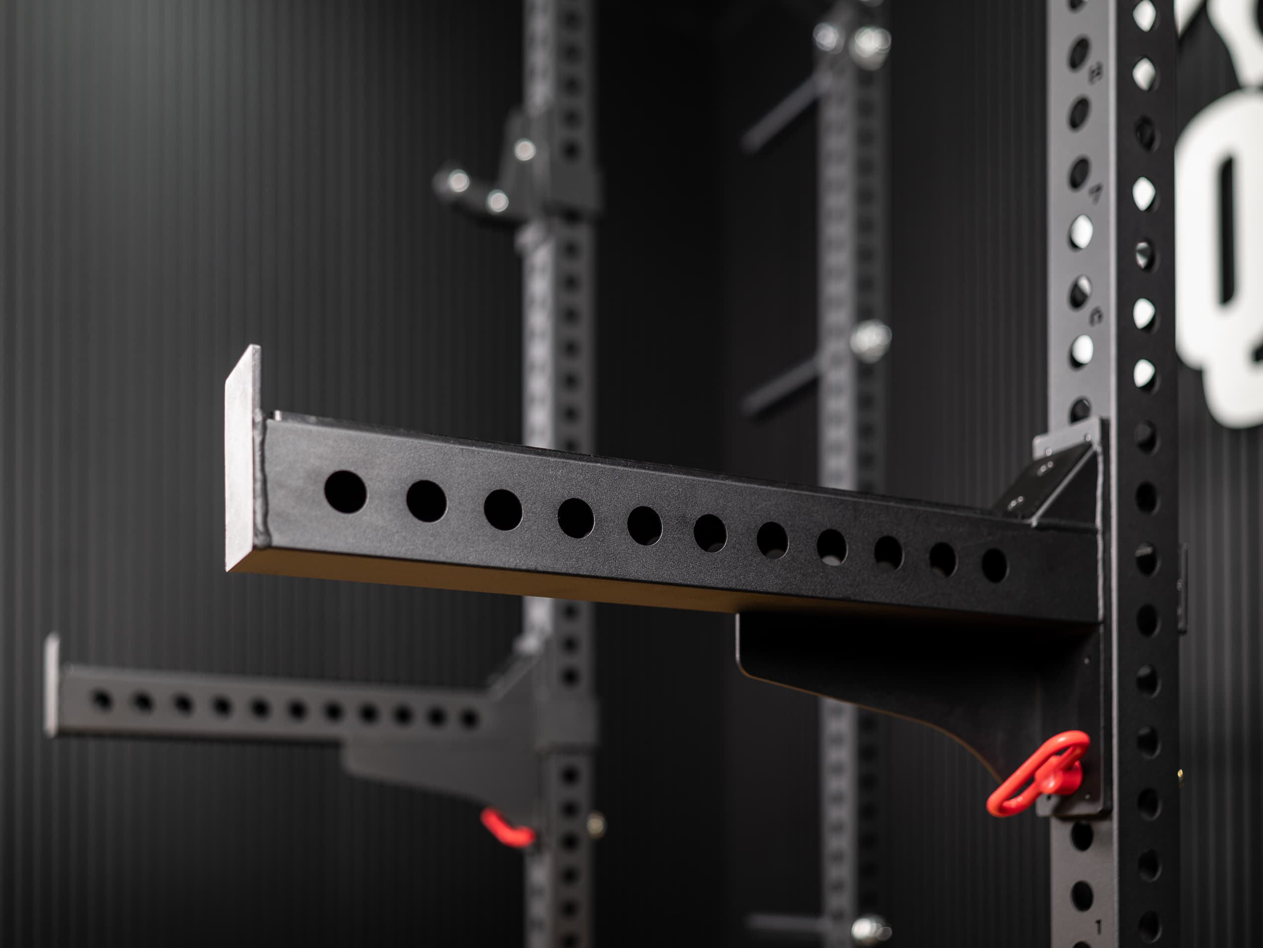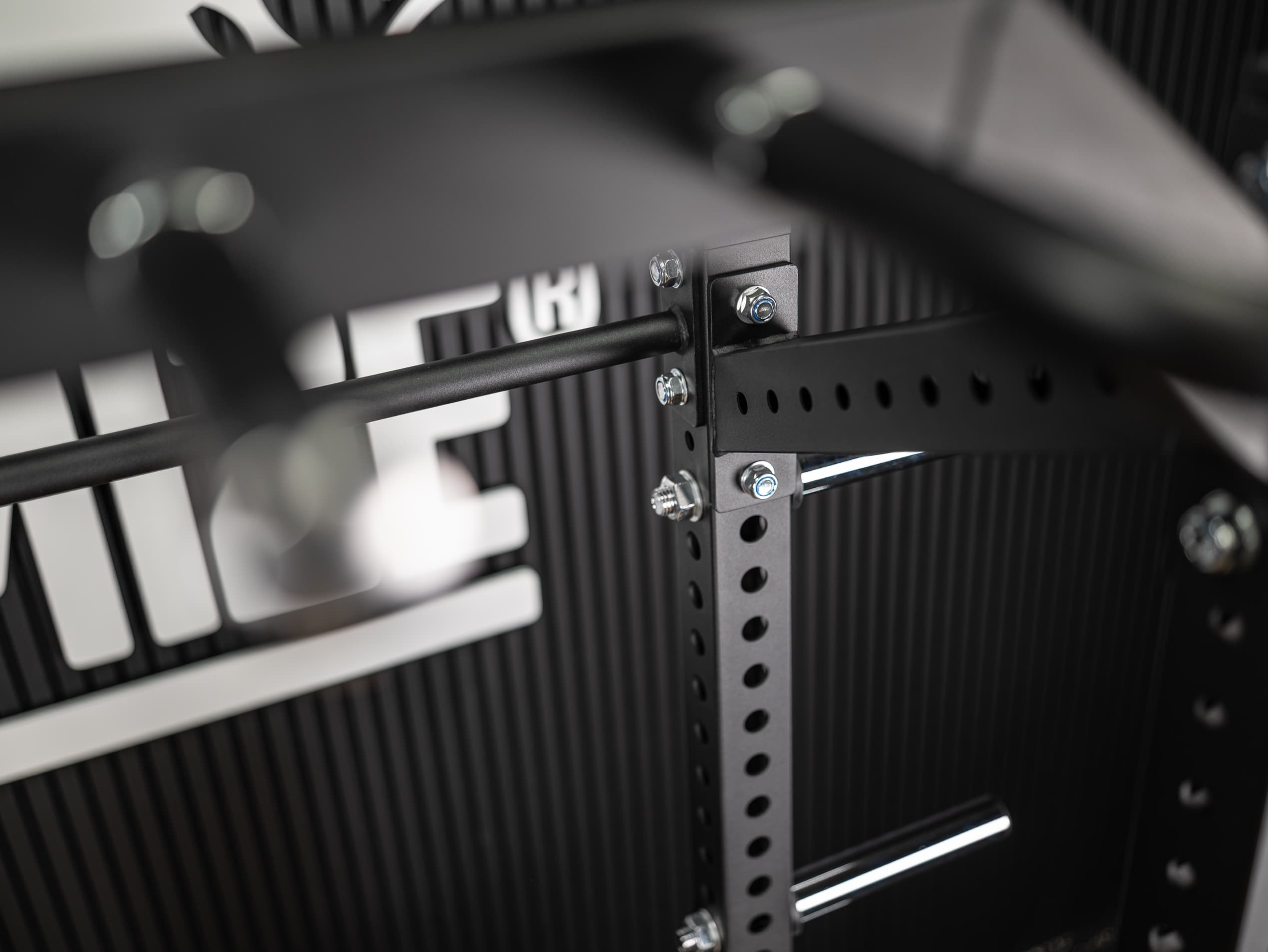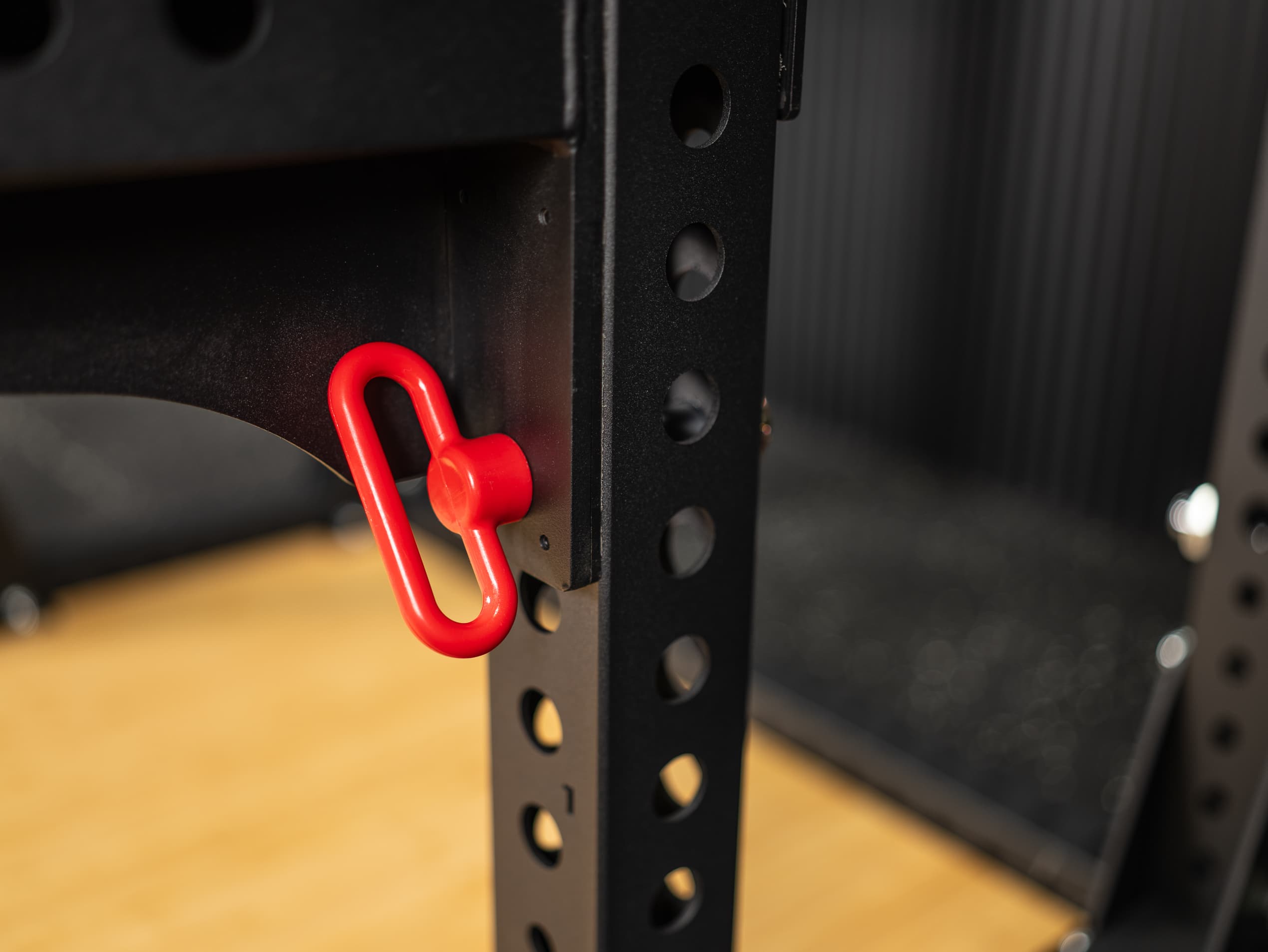 - Das Half Rack verfügt über Lochungen für Band Pegs und wird direkt mit 4 Band Pegs geliefert, ideal für Widerstandstraining mit Powerbands.