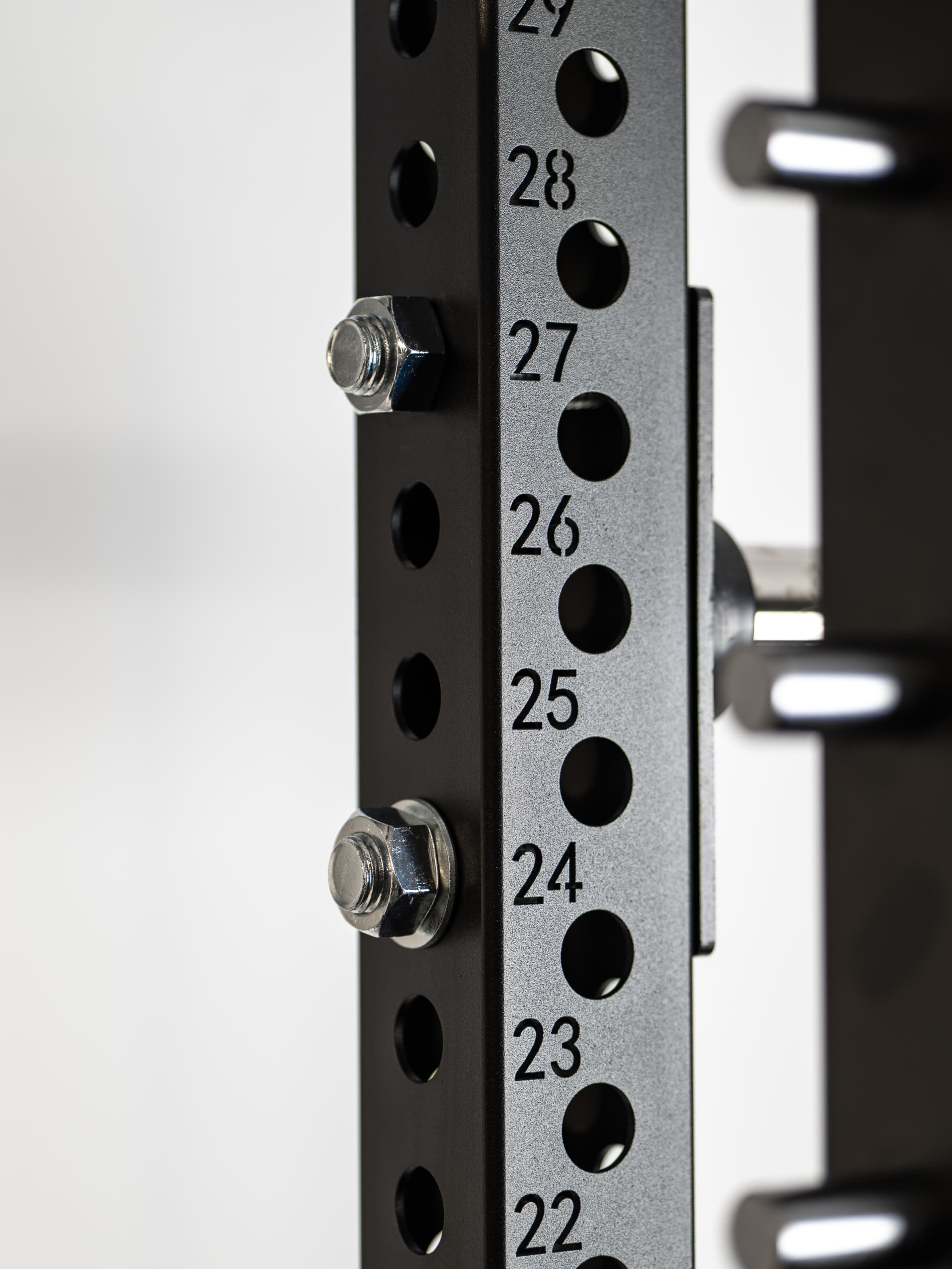 Die Hantelscheibenhalter lassen sich mühelos montieren und integrieren sich nahtlos in das professionelle Design deiner Kraftstation.