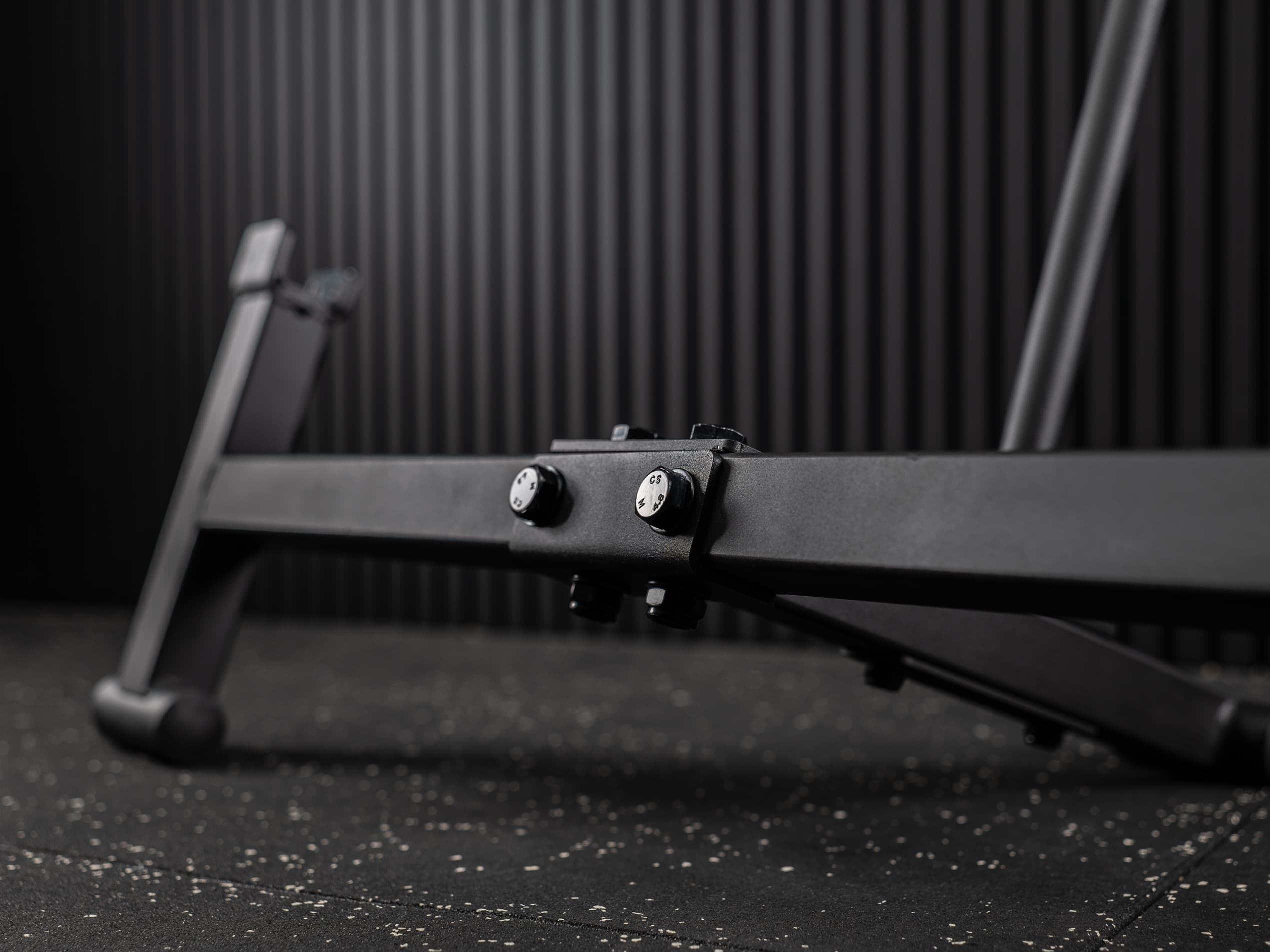 With the Barbell Jack SQMIZE® BJ-106 you can easily load and unload barbells. Since deadlifts and other exercises start on the ground, you can use the barbell jack to carry out your workouts alone and effortlessly. The ultra-stable design is provided with solid nylon pads all around at the two mounting points and thus ensures comprehensive protection for the knurling of the barbell. Dead weight 12.1 kg. With 3mm steel thickness.