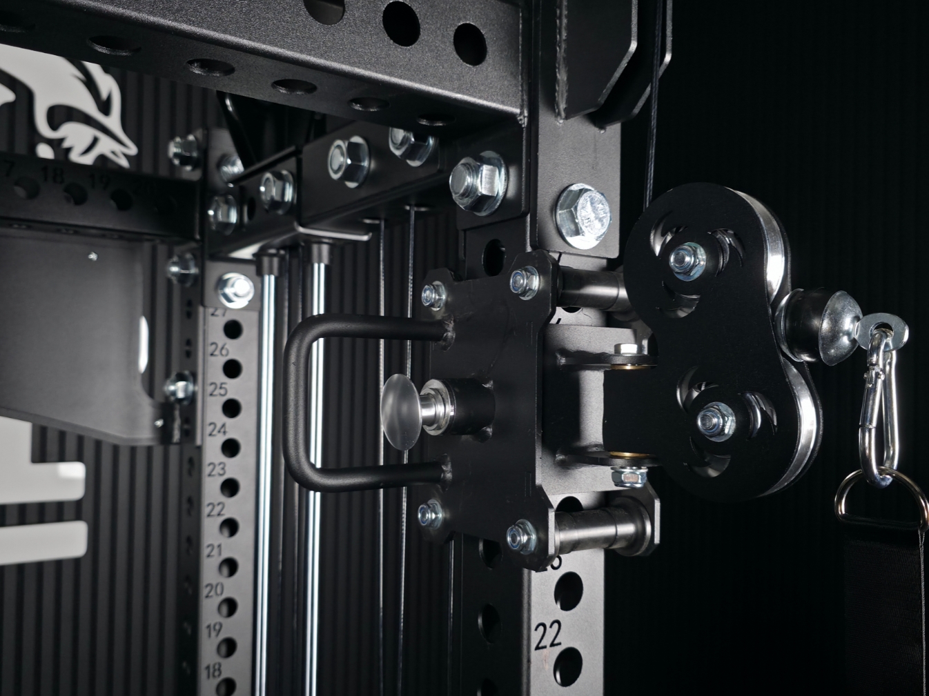 - Sandwich J-Cups: Hochbelastbare Hantelablagen mit vollständigem Nylonschutz inklusive.