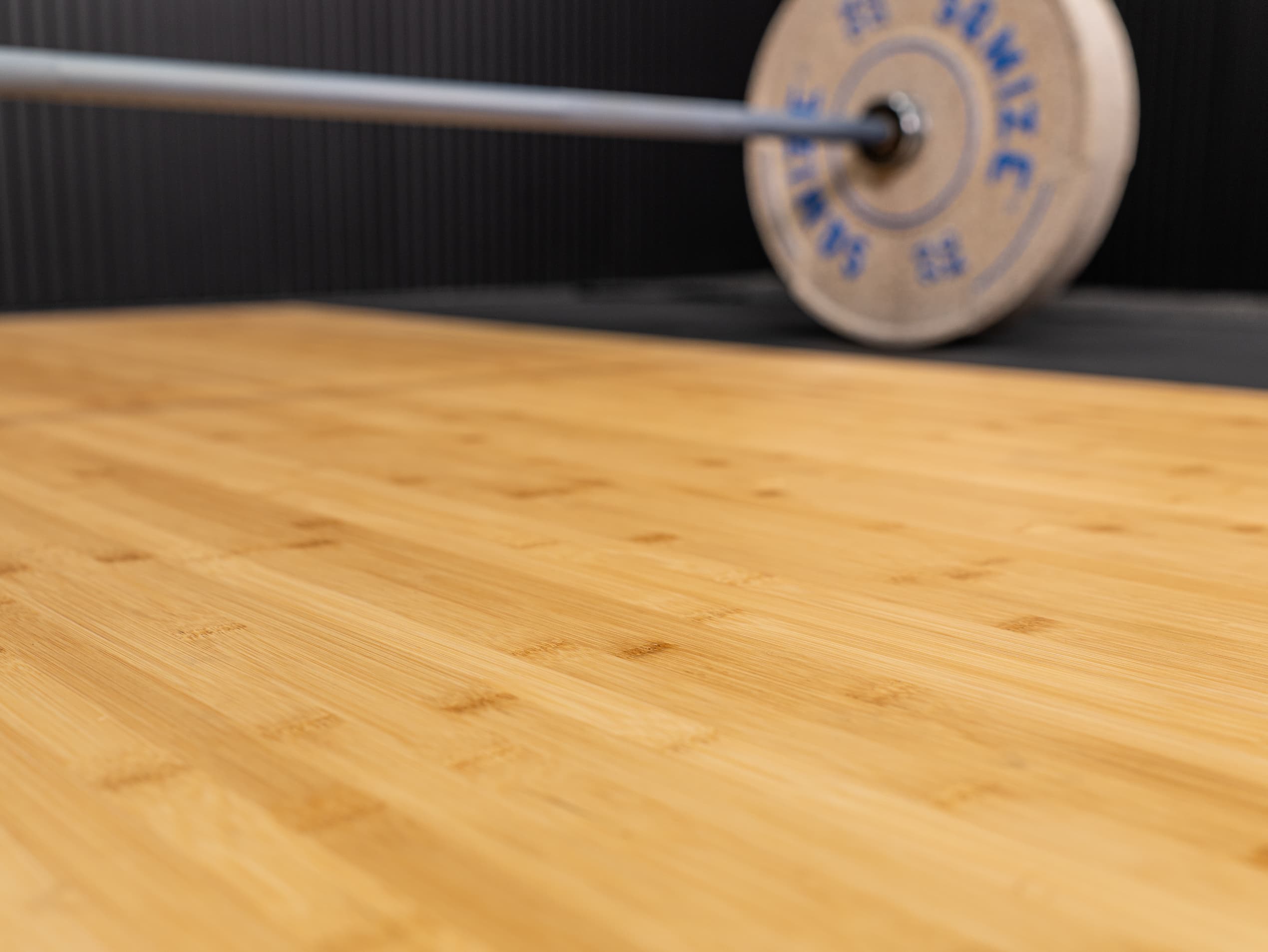 Die Gewichtheberplattform SQMIZE® LP250 ist für den intensiven Trainingseinsatz konzipiert. Ihr Herzstück bildet eine 200 x 100 cm große Bambusplatte mit einer Stärke von 30 mm. Bambus zeichnet sich durch eine besonders dichte Zellstruktur aus und weist eine Oberflächenhärte auf, die deutlich über der von Eichenholz liegt. Dank der hohen Biegefestigkeit und Elastizität bietet das Material ideale Eigenschaften für Gewichtheber-Plattformen.