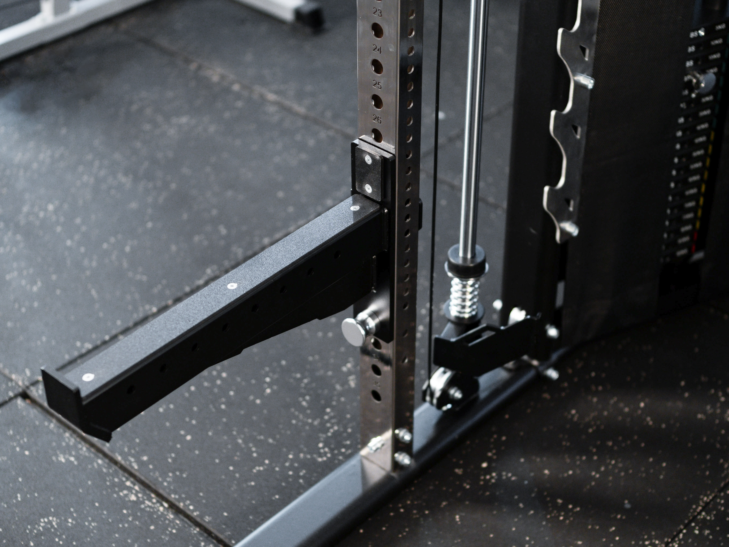 Die Fusion Power Gym Spotter Arms SQMIZE® SQ-S987-SA sind Schwergewichte. Die massive Stahlrohrkonstruktion ist mit Nylon Protektoren zum Schutz der Langhantel ausgestattet. Das Handling ist sehr einfach. Zusätzlich werden die Arme mit einem Bolzen abgesichert. Die Spotter Arms geben deinem Training Spielraum und Flexibilität.