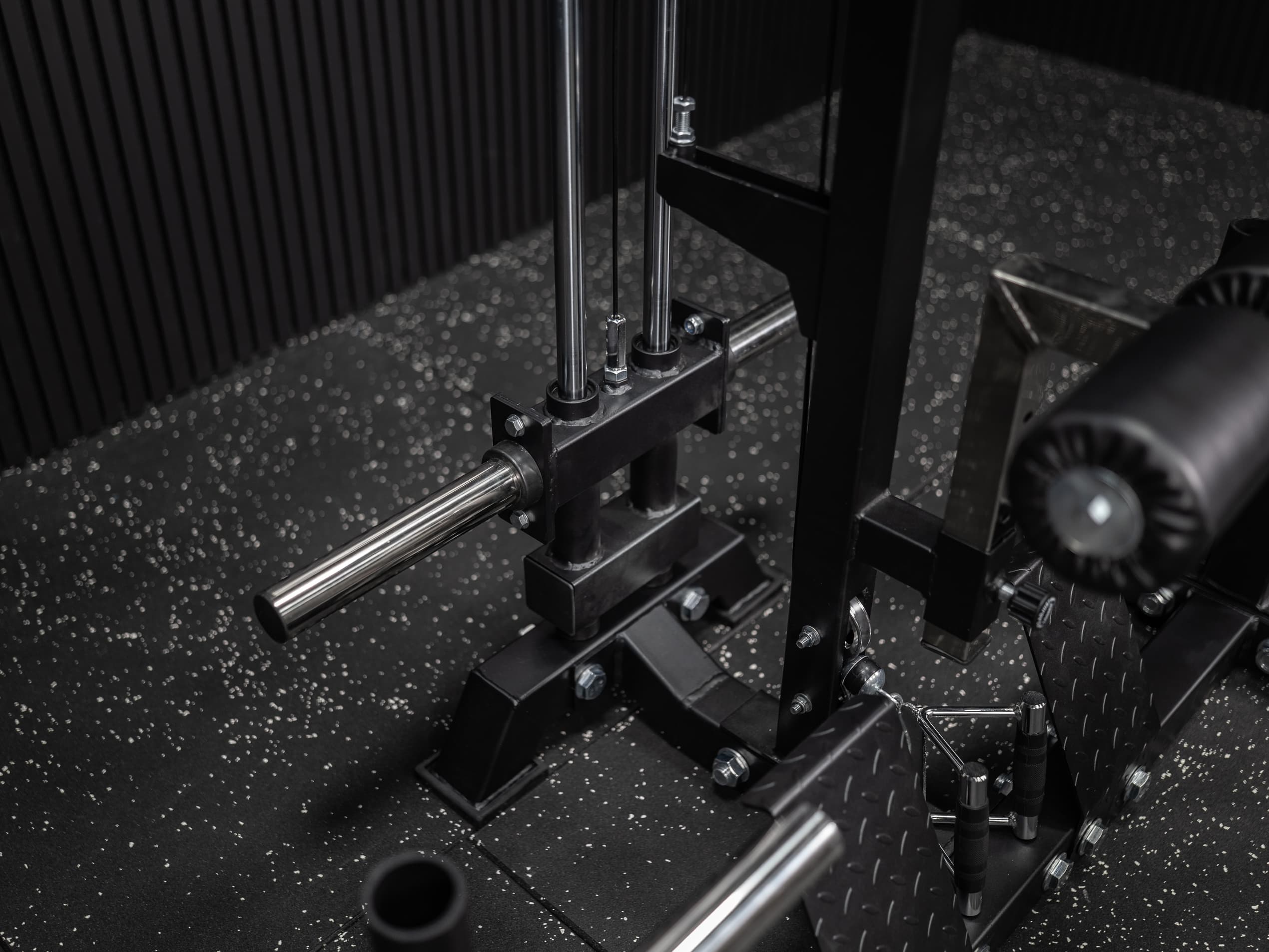 - Double-Linear-System: Sowohl die Smith Machine als auch der Latzugschlitten sind auf 30 mm Vollstahlwellen linear gelagert.