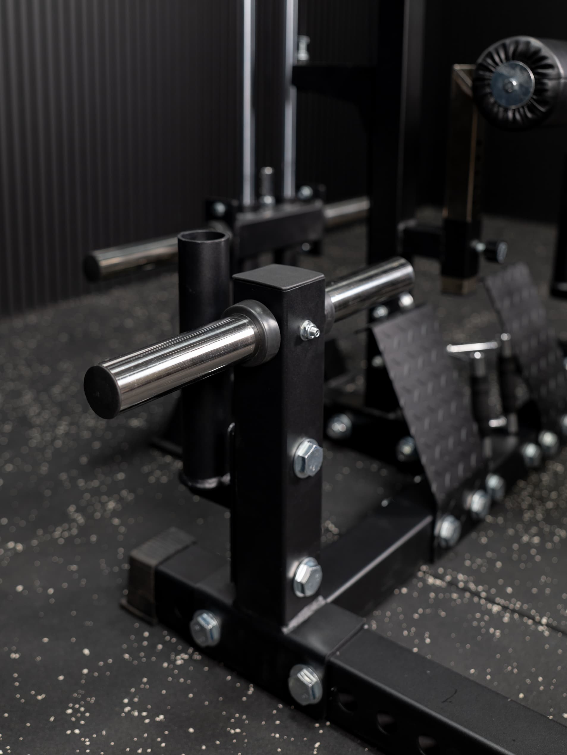 - Vollständige Trainingsfreiheit: Nutze das Half Rack für freies Langhanteltraining oder die linear geführte Smith Machine für sichere Sätze bis zum Muskelversagen.