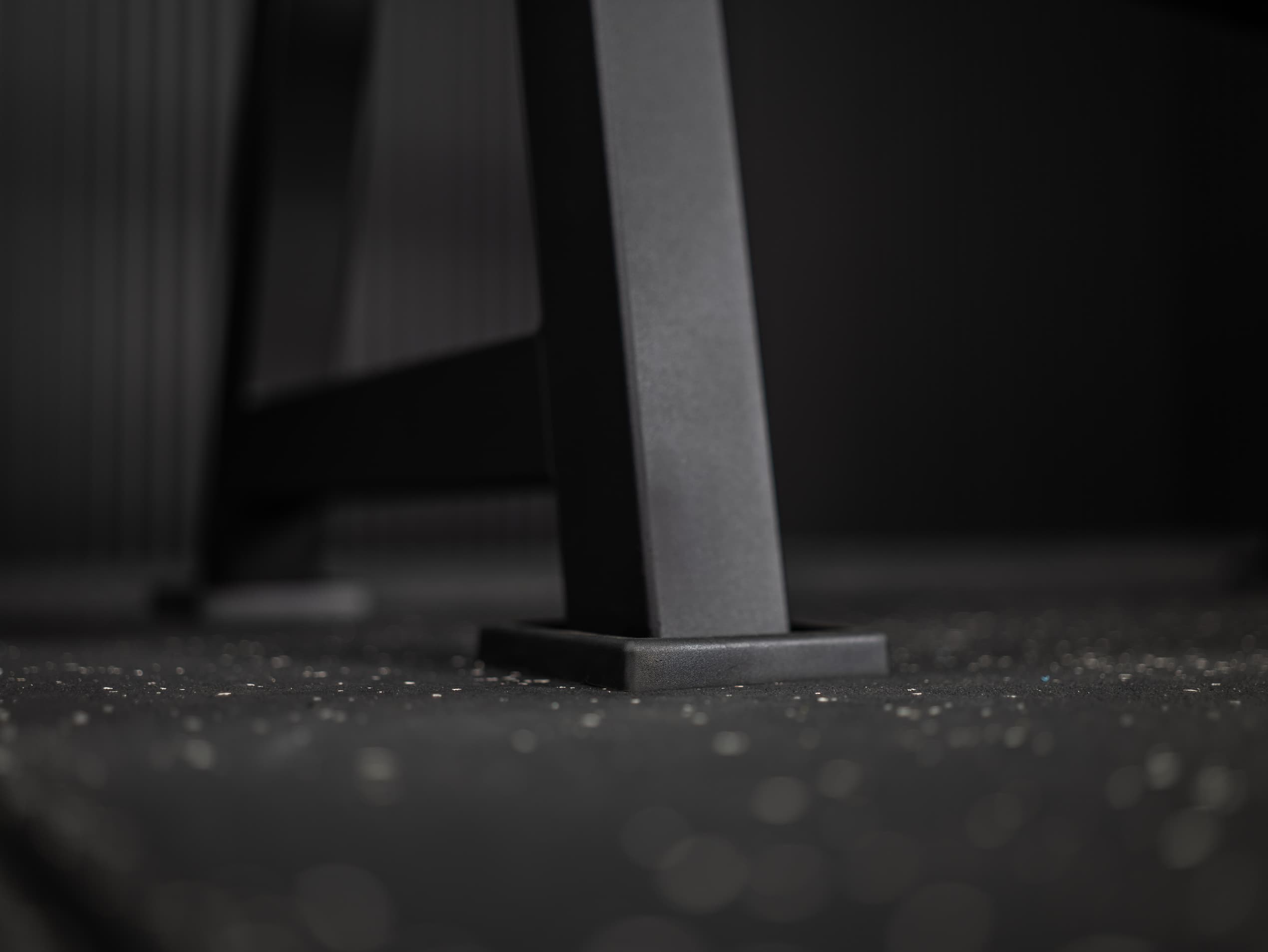 Das Design des SQMIZE® SQ244 ist auf höchste Beanspruchung ausgelegt. Der Hauptrahmen besteht aus einem robusten **60 x 60 mm** starken Stahlprofil mit einer **2 mm** Wandstärke. Die **pulverbeschichtete, schwarze** Oberfläche schützt den Ständer dauerhaft vor Kratzern und Korrosion. Die zweilagige Anordnung optimiert die Raumausnutzung und ermöglicht einen bequemen Zugriff auf alle 20 Ablagen.