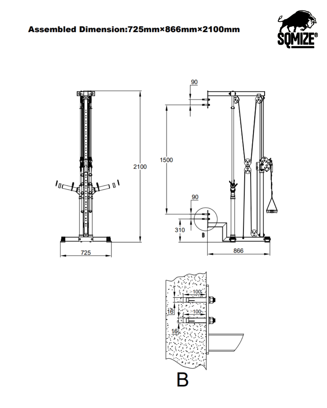 Premium Functional Wall Tower SQMIZE® FPT400, Wall Cable Machine