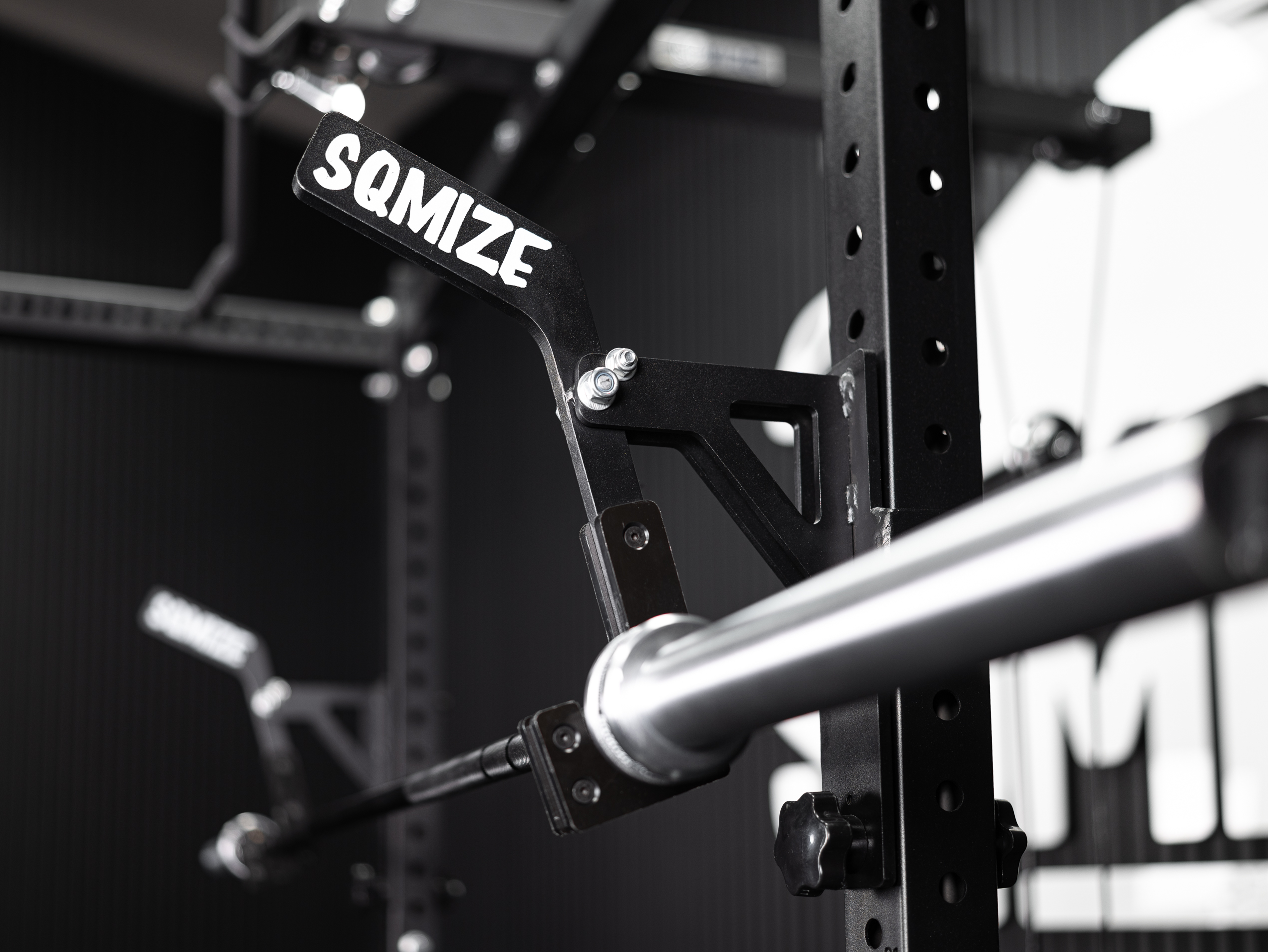 The Monolift SQMIZE® ELITE CLUB SQ8.0ML-RS is the perfect addition to your power rack from the SQ8.0-RS or SQ8.0 series if you want to make your training safer, more comfortable, and even more focused. It reduces unnecessary movements before the actual lift and automatically brings the barbell into the ideal starting position – without walkout. This allows you to concentrate fully on technique and strength. Thanks to its open design, barbell bars can be stored easily and safely. The integrated backstop prevents the barbell from swinging after being placed down and ensures maximum stability. Whether squats, bench presses or overhead presses – this monolift makes your home gym significantly more efficient.