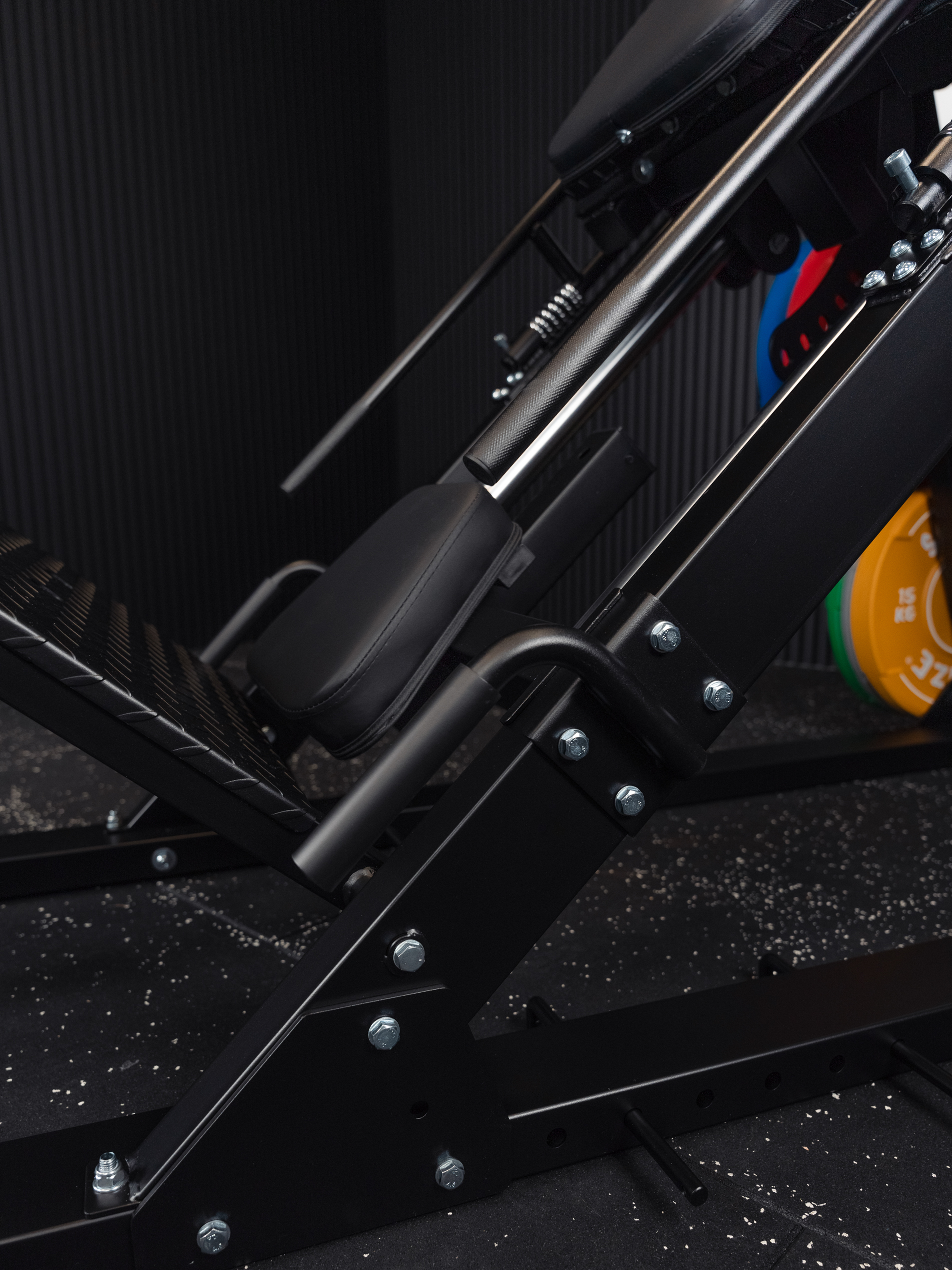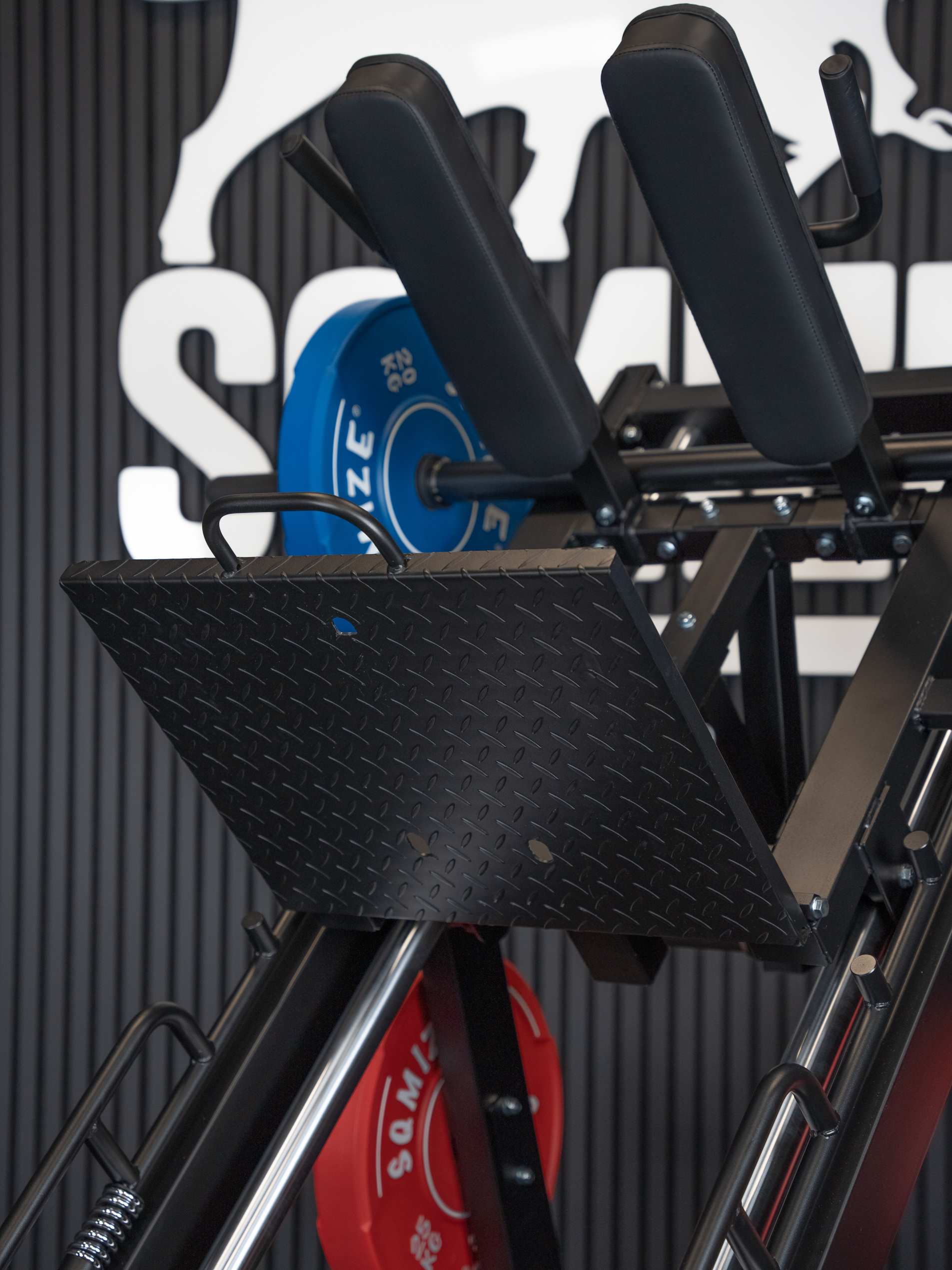 - Die Sicherheitsverschlüsse sind eine kleine Herausforderung beim Einsatz der Maschine für Hack Squats