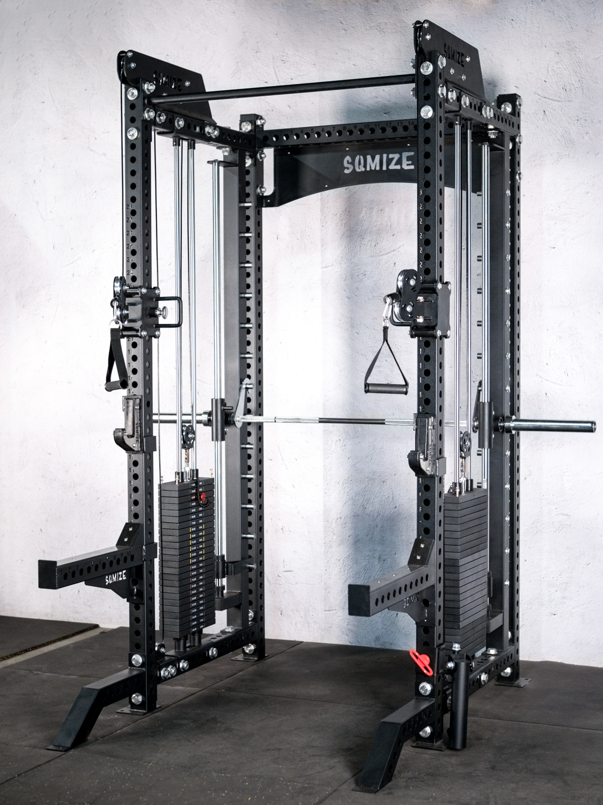 SQMIZE® Tri-Power Gym SQ-S955-120 | Kabelzugstation, Multipresse & Half Rack | Höhe 218 cm | Inkl. 2 x 120 kg Gewichtsblöcke
